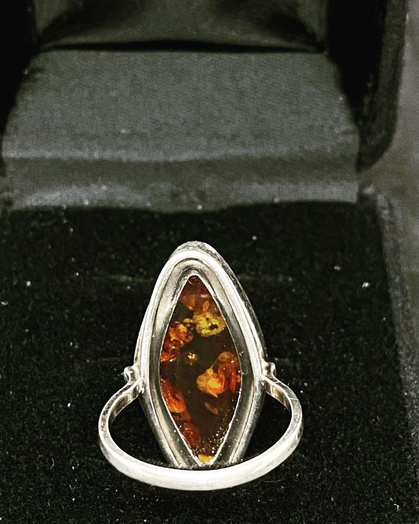 Vintage Sleek Orange Jade Sterling Silver 835 Band Ring - Size 7.0