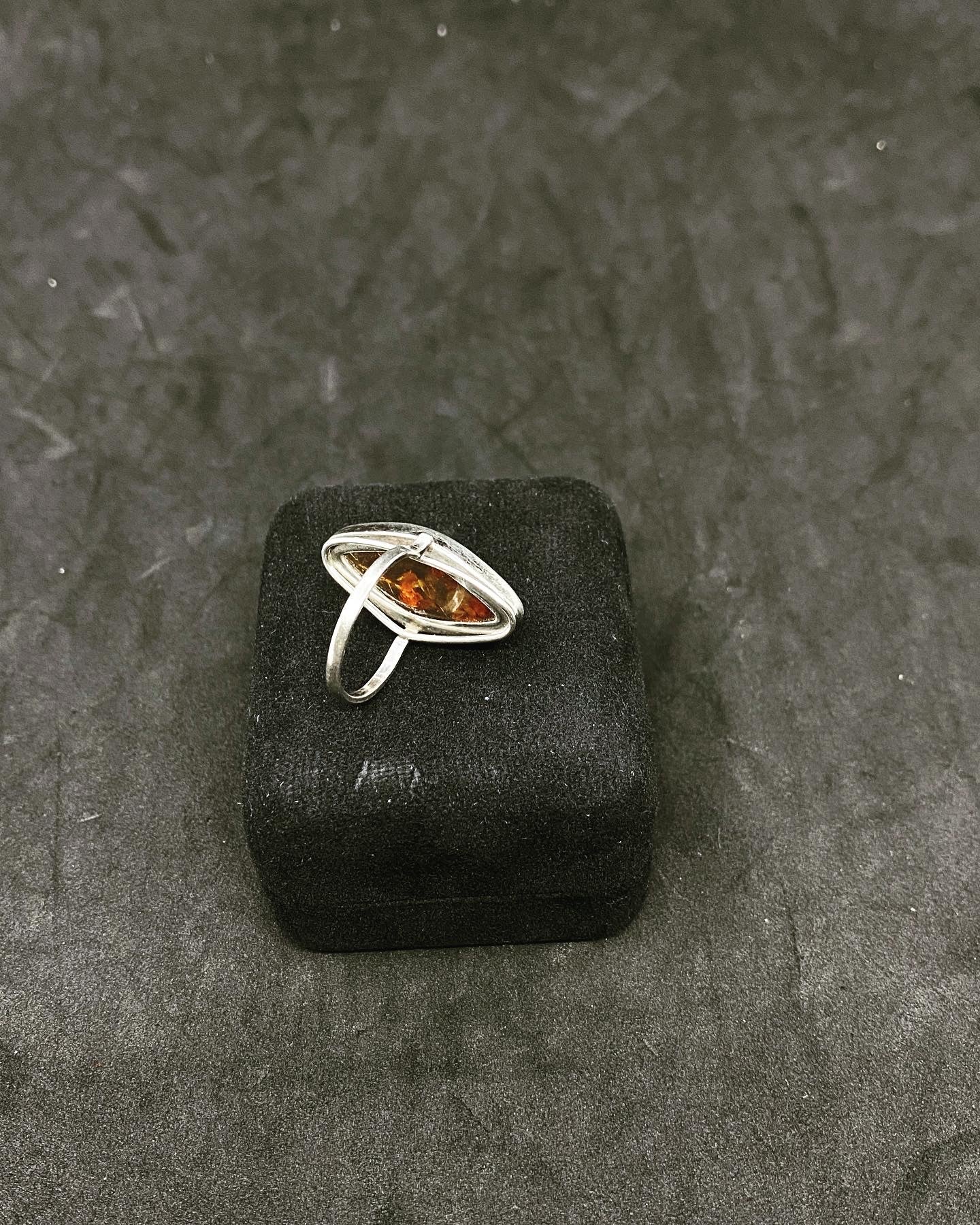 Vintage Sleek Orange Jade Sterling Silver 835 Band Ring - Size 7.0 US
