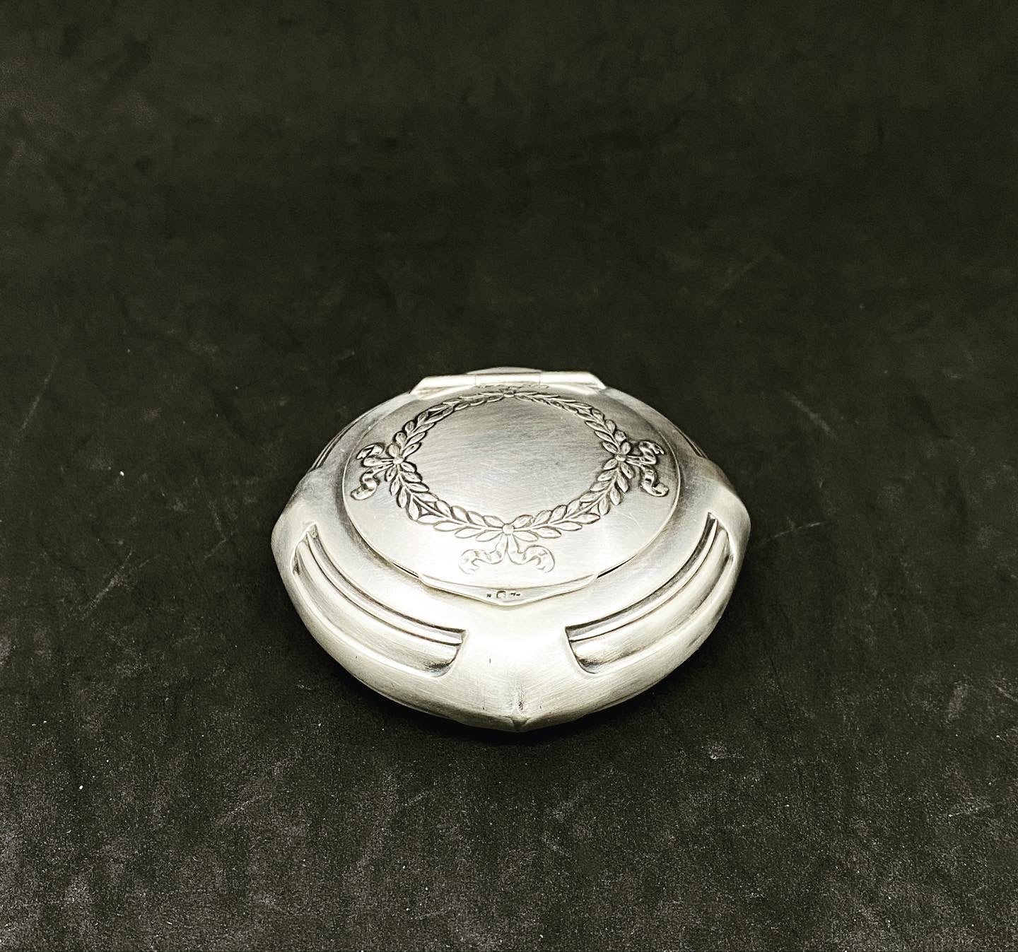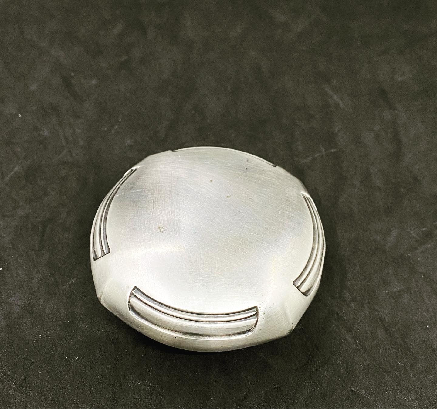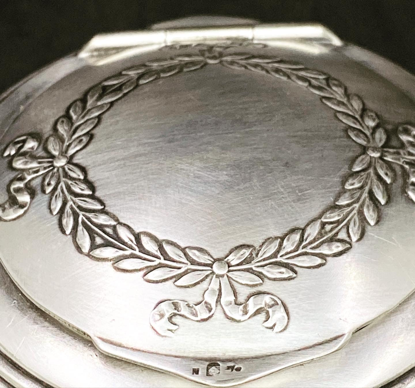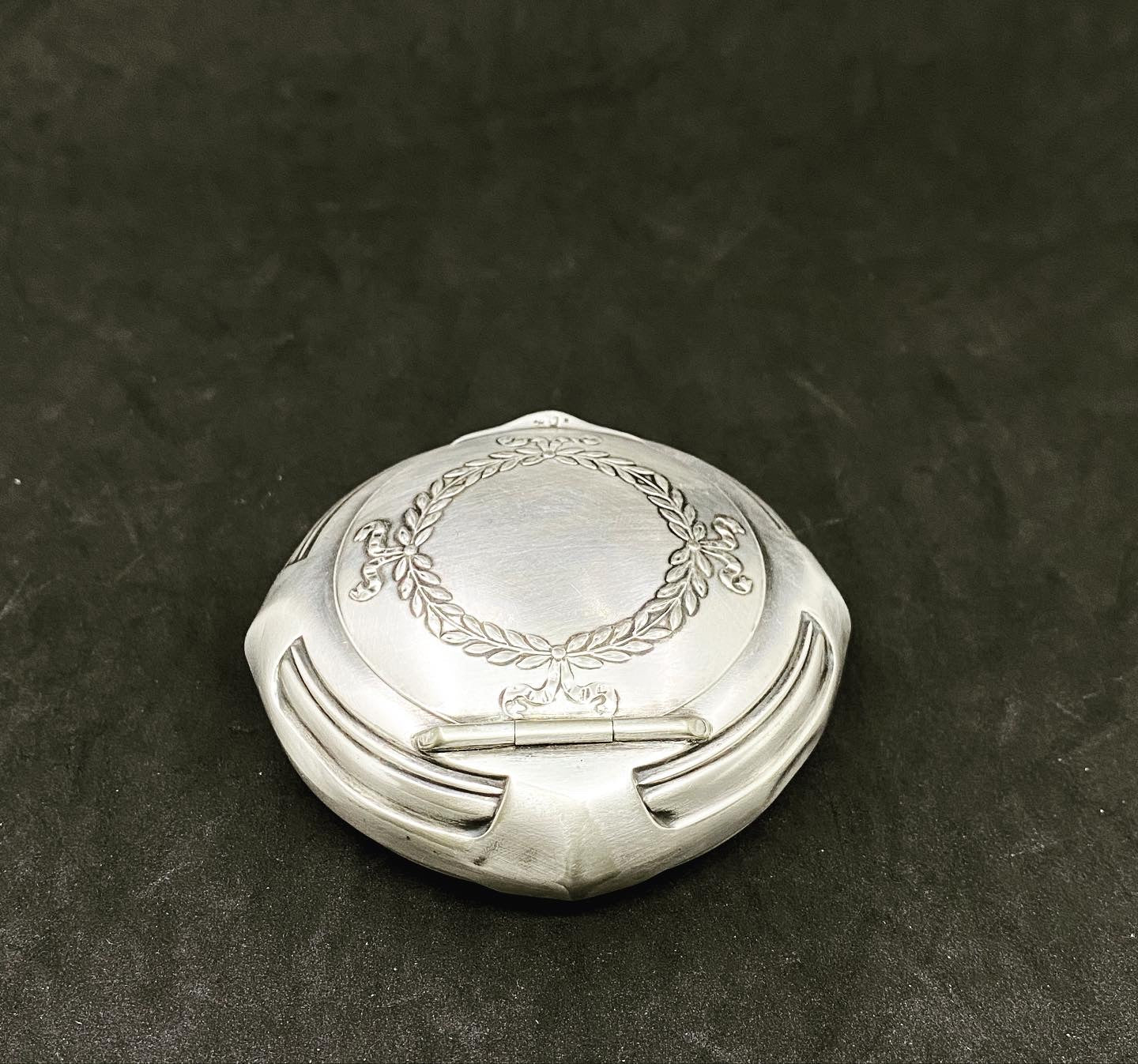 Made of pewter and silver plated, with the inner lining of silk origin, small jewelry box of the reputable brand WMF. With foliate decoration. Original silk lining with some signs of the passage of time but in very good condition considering the age of the object.