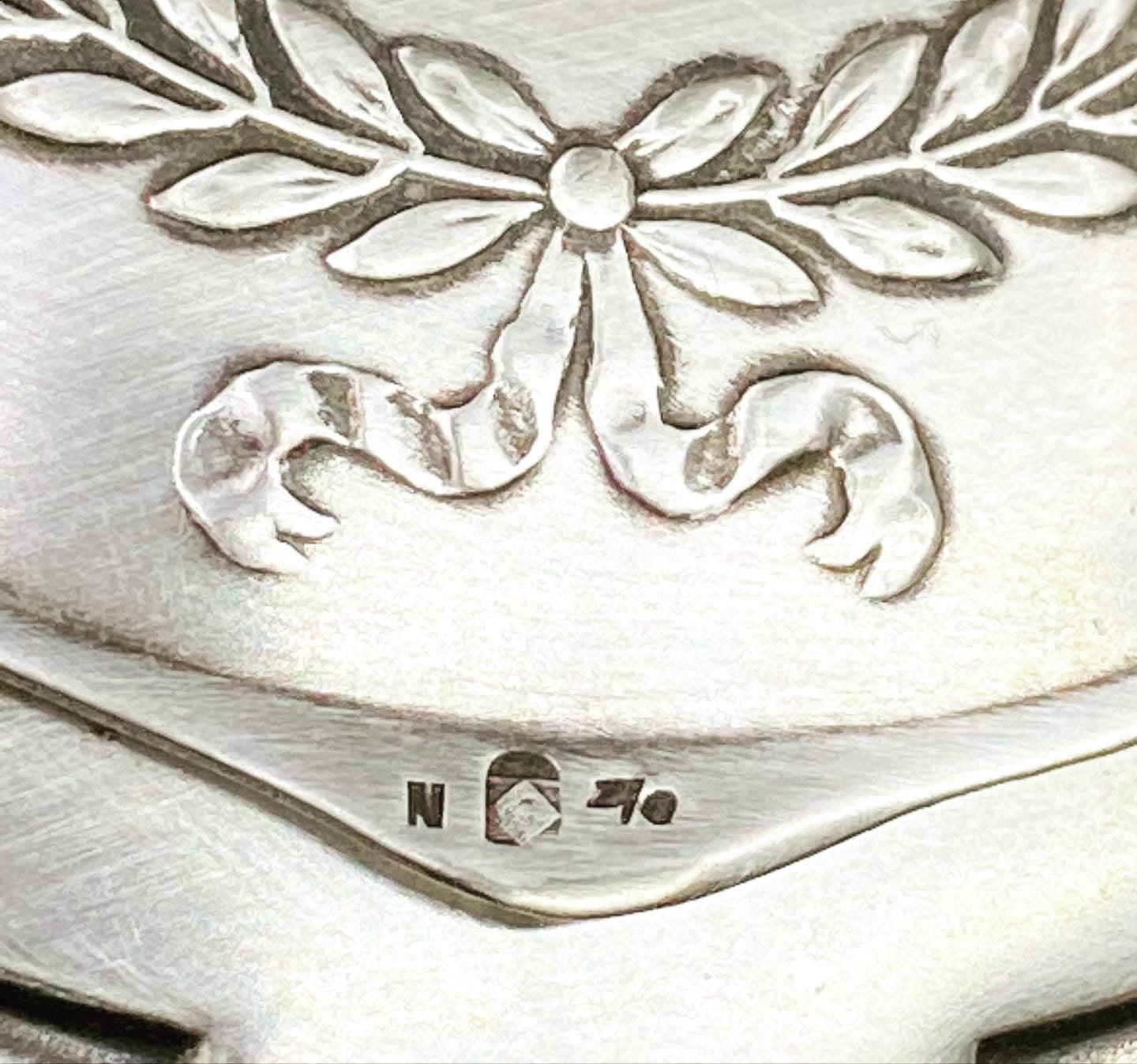 At the bottom are the different punches indicating the quality, quantity of silver plating.