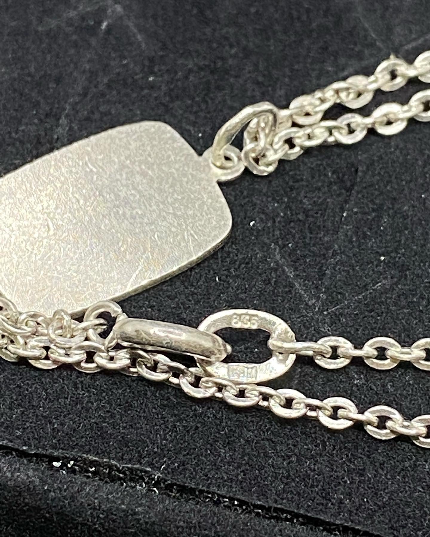 This is a cute little sterling chain with a small silver pendants and it is in good condition with no flaws. The pendant was handmade but I can’t read any stamp, the chain definitely stamp 835 is very clear., very nicely and one can wear with pride or maybe it should be very nice gift.